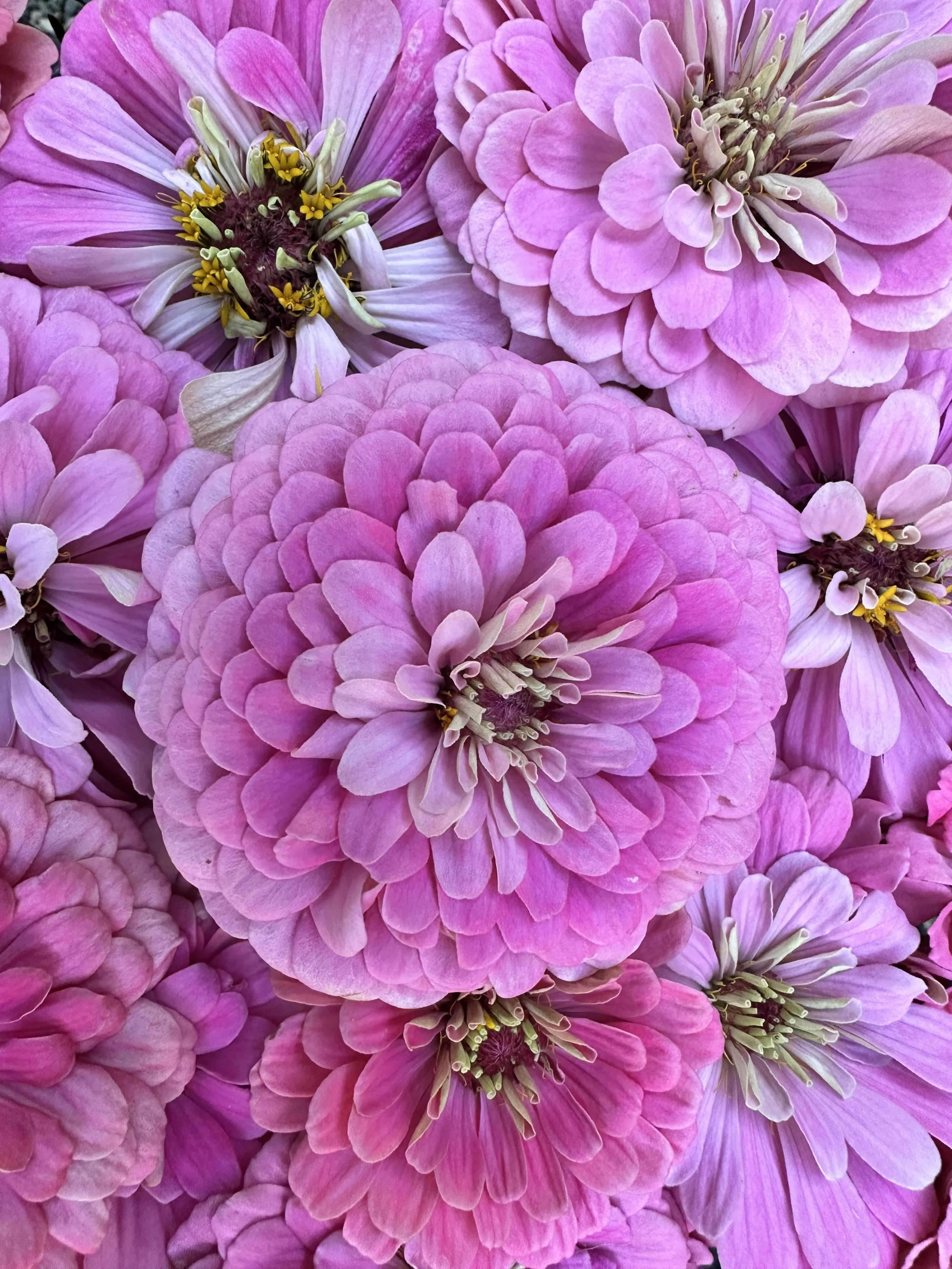 Celosia, hydrangeas, dara, yarrow, statice, zinnias, strawflowers, basil, ageratum, cosmos, marigolds, scabiosa, feverfew, sunflowers, gomphrena, dahlias, lisianthus, solidago, queen anne’s lace, cynoglossum, rudbeckia, delphinium, white marigolds, jewels of opar